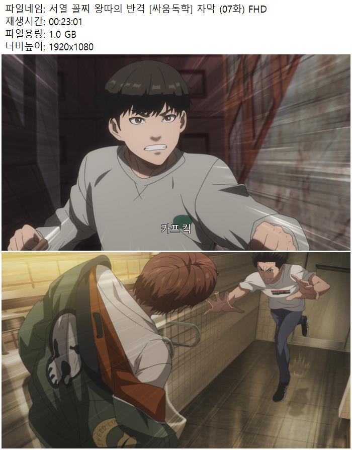 | 서열 꼴찌 왕따의 반격 [싸움독학] 자막 (07화) FHD.mp4 | 1 G | 00:23:01 | 1920x1080 |