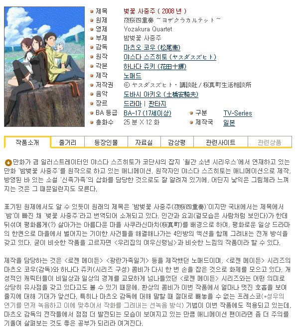 [인생] 벚꽃 사중주 [1기] 01-12완결 [OVA 포함] -미스테리 능력 액션-