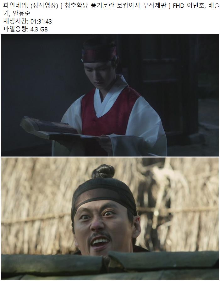 | (정식영상) [ 청춘학당 풍기문란 보쌈야사 무삭제판 ] FHD 이민호, 배슬기, 안용준.mp4 | 4.3 G | 01:31:43 | 1920x1080 |