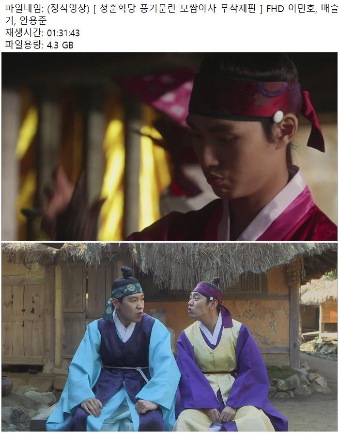 ico(정식영상) [ 청춘학당 풍기문란 보쌈야사 무삭제판 ] FHD 이민호, 배슬기, 안용준/