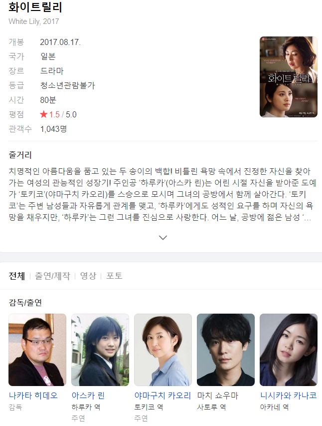 | (정식영상) [ 화이트 릴리 ] White Lily FHD.mp4 | 3.7 G | 01:20:19 | 1920x1080 |