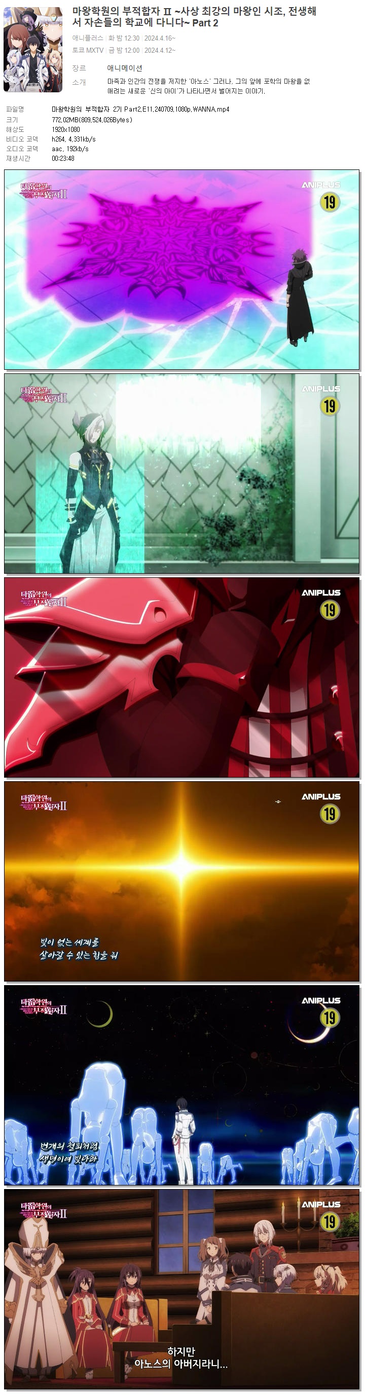 | 마왕학원의 부적합자 2기 Part2.E11.240709.1080p.WANNA.mp4 | 772 M | 00:23:48 | 1920x1080 |