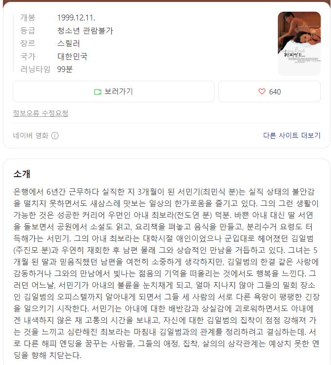| 1080p [해피엔드] 전도연 리즈시절 올노1 파격 베드신 실제논란.mp4 | 2.2 G | 01:39:58 | 1920x1080 |