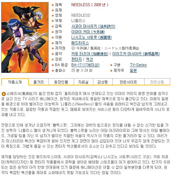 | NEEDLESS 16화.avi | 418.7 M | 00:23:59 | 800X450 |