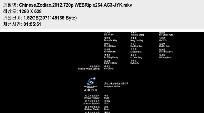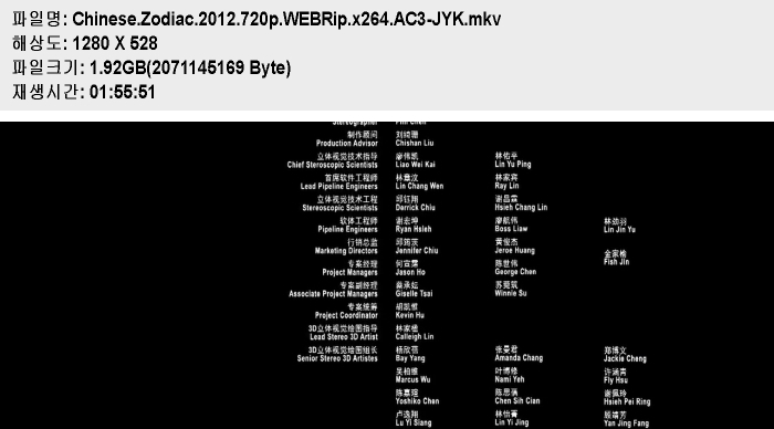 | Chinese.Zodiac.2012.720p.WEBRip.x264.AC3-JYK.mkv | 1.9 G | - | 1280x720 |