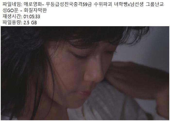 | 애로영화- 무등급성진국충격59금 수위파괴 녀학쌩x남선생 그룹난교 성GO문 - 화질자막완.mkv | 2.5 G | 01:05:33 | 1910x1070 |