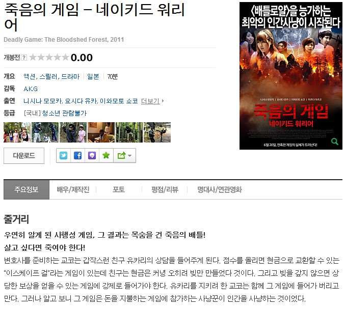 | [자체한글자막] 죽음의 게임:네이키드 워리어.Deadly.Game.2012.720p.KOR.HDRip.H264-Cine21i.mp4 | 1.7 G | 01:14:27 | 1280x720 |