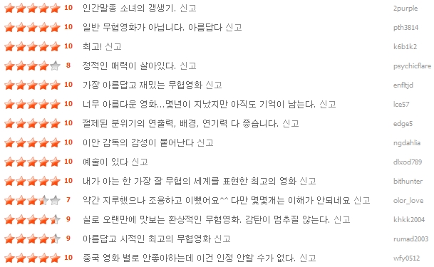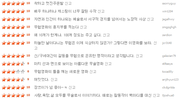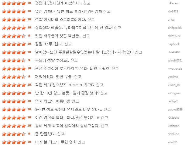 작품 평가 : IMDb 네티즌 평점 : 8.0/10 네이버 네티즌 평점 : 8.52/10