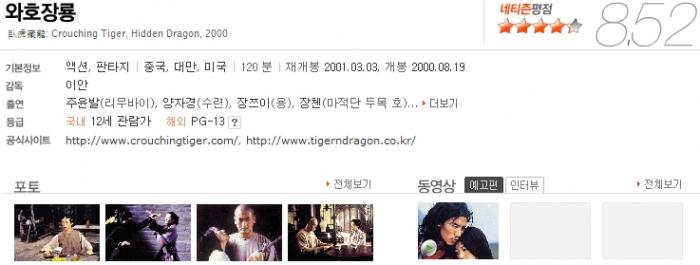 제가 오늘 소개해드릴 영화는 주윤발 장쯔이 양자경 주연의 무협판타지영화 `와호장룡`이네요