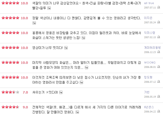 작품 평가 : IMDb 네티즌 평점 : 8.0/10 네이버 네티즌 평점 : 8.41/10