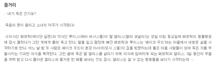 ico웨이크 우드(2011)_에이단 길렌, 에바 버시스틀, 엘라 코널리_공포/