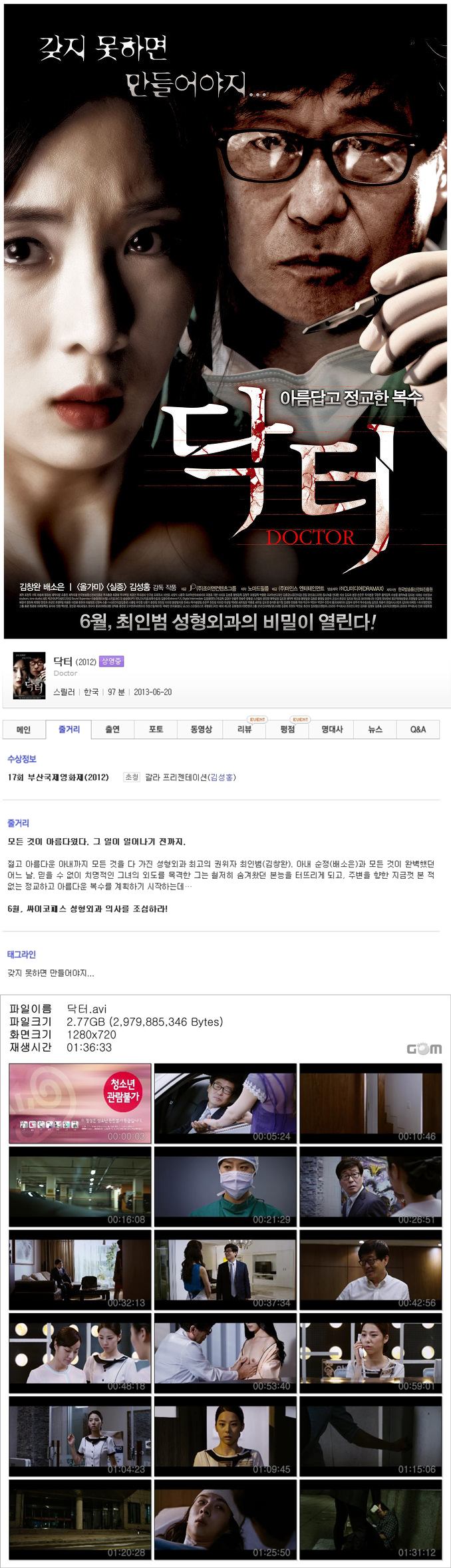 [닥터.Doctor]극장동시!김창완주연배소은파격노출!아름답고정교한복수!