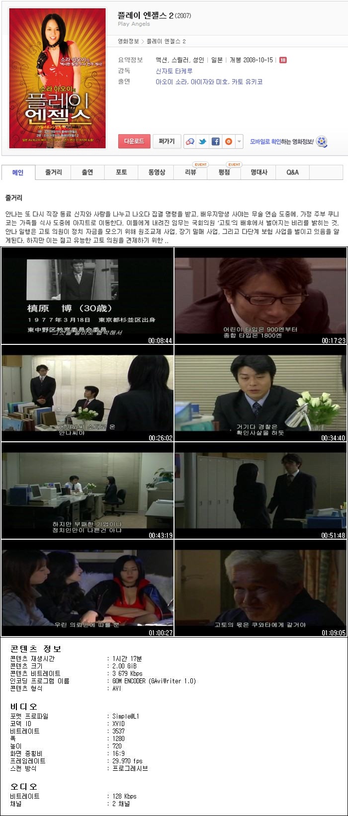 | 아오이소라의 플레이앤젤스2.Play Angels 2.2008.DVDRip.XviD.2.avi | 2 G | 01:17:47 | 1280X720 |