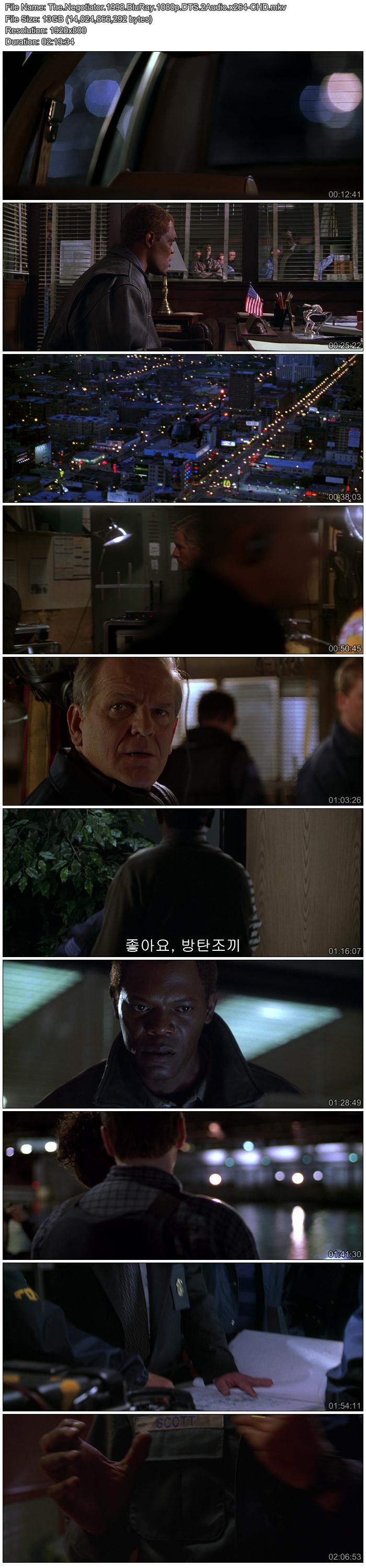 | The.Negotiator.1998.BluRay.1080p.DTS.2Audio.x264-CHD.mkv | 13.1 G | 02:19:34 | 1920x1080 |