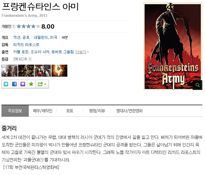 | 프랑켄슈타인스 아미.Frankensteins.Army.2013.1080p.BluRay.x264.DTS-ROVERS.mkv | 6.6 G | - | 1920x1080 |