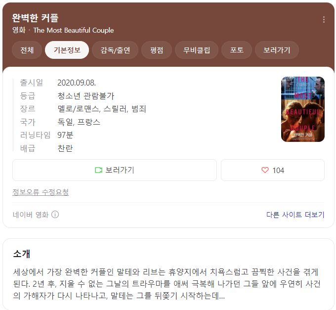 | 1080p [완벽한 커플] 노삭 올노 휴양지 충격캉간사건 성기노츌 완벽자막.mp4 | 1.5 G | 01:38:00 | 1920x1080 |