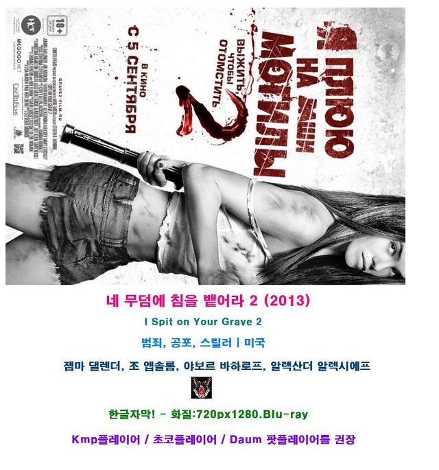 2013.무삭제올노출.ISpitonYourGrave.2.720p.BluRay.avi 2.6 G 01:46:00 1280x720
