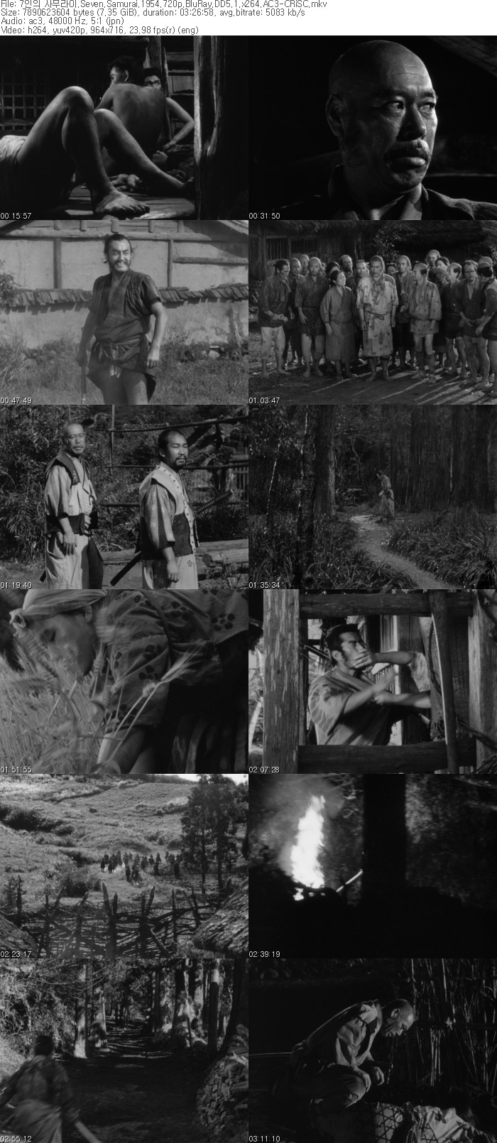 | 7인의 사무라이.Seven.Samurai.1954.720p.BluRay.DD5.1.x264.AC3-CRiSC.mkv | 7.3 G | 03:26:58 | 1280x720 |