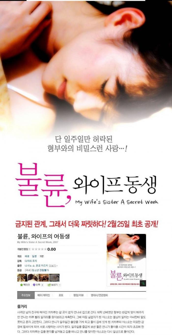 | [불륜, 와이프의 여동생]허락된 일주일간의 사랑.avi | 996.1 M | 01:09:00 | 800X600 |