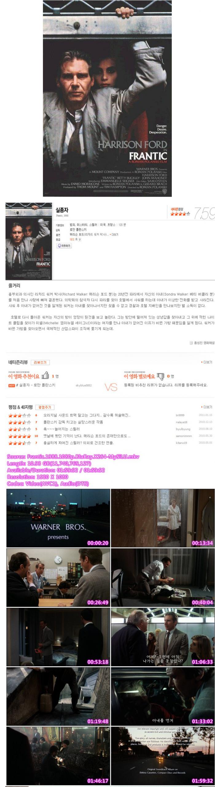 | Frantic.1988.1080p.BluRay.X264-MySiLU.mkv | 10.9 G | 01:59:52 | 1920x1080 |