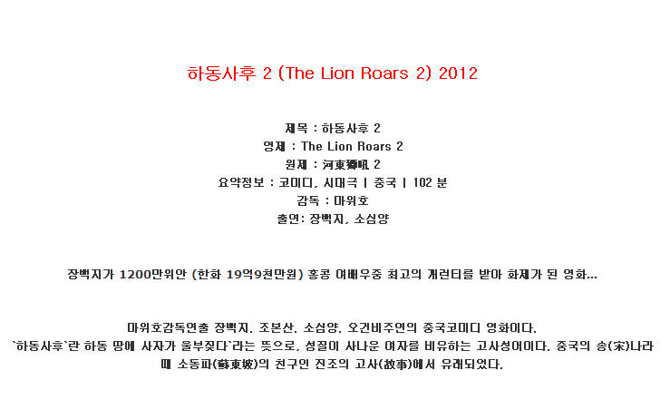 | The.Lion.Roars.2.2012..mp4 | 2.4 G | 01:37:00 | 800X330 |