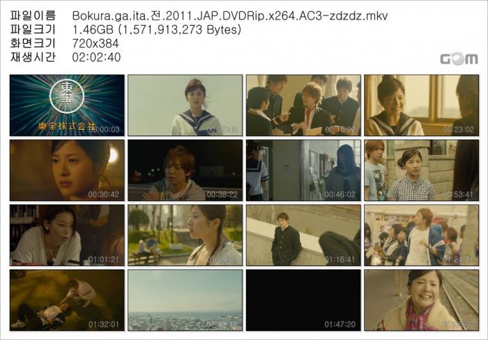 | Bokura.ga.ita.전.2011.JAP.DVDRip.x264.AC3-zdzdz.mkv | 1.5 G | 02:02:00 | 800X426 |