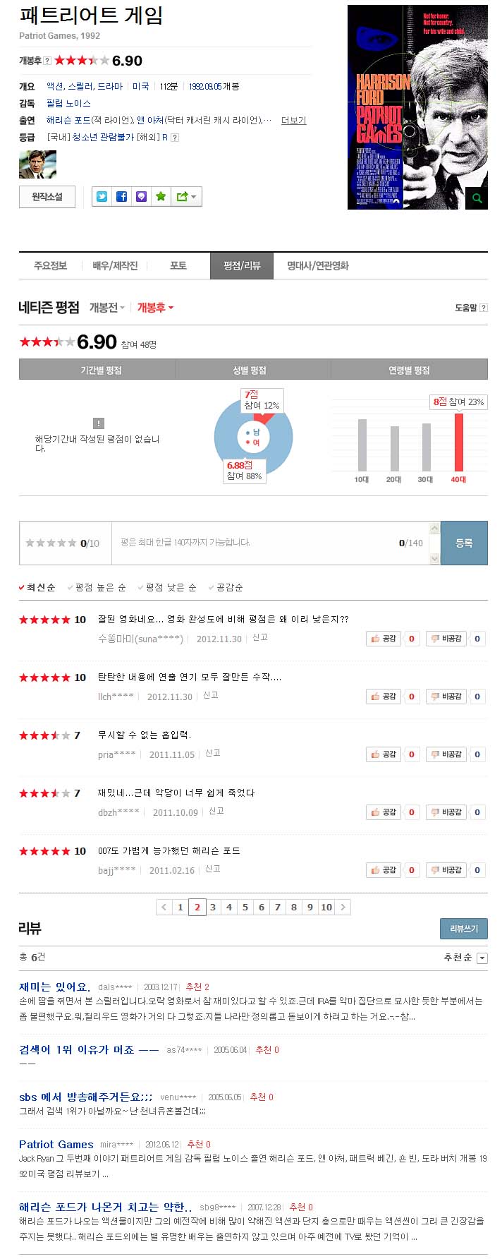 ico[톰클래시원작]해리슨포드 패트리어트게임/