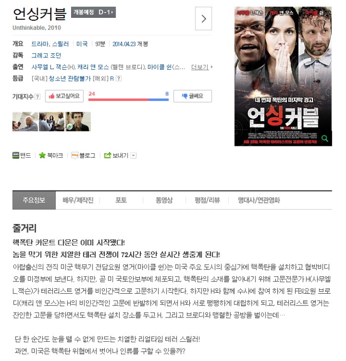| 언싱커블.Unthinkable.2014.H264.1080p-NEUES.mp4 | 2.8 G | 01:37:00 | 1920x1080 |