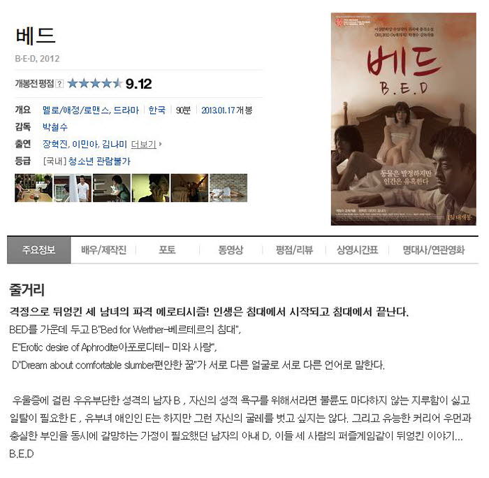 | 베드.B.E.D.2013.BDrip.720p.h264.AAC-Neues.mp4 | 2.2 G | 01:29:00 | 1280x720 |