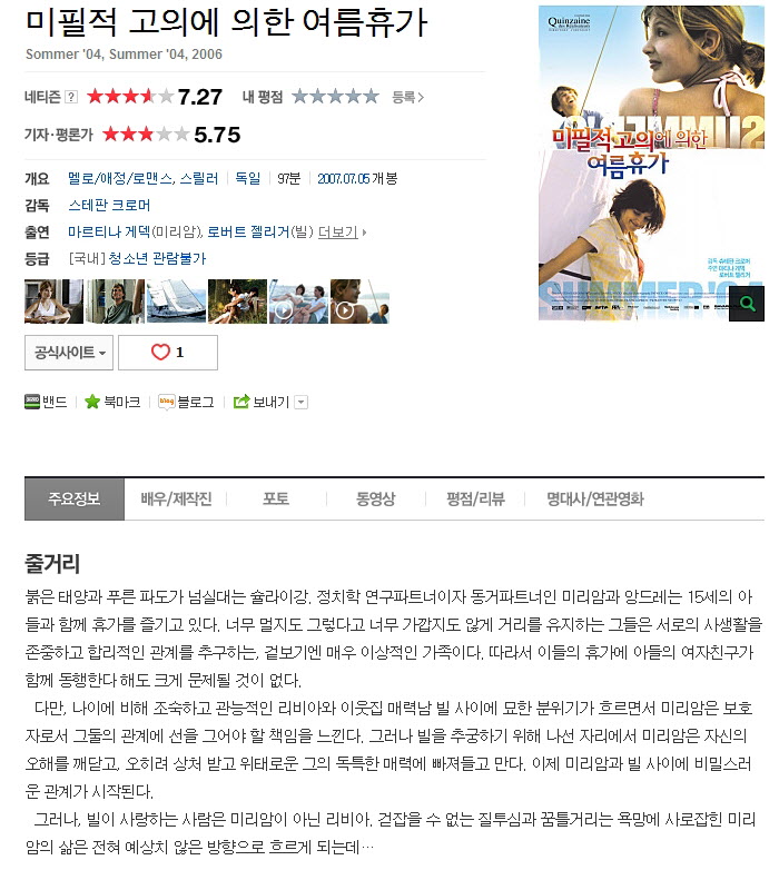 | 미필적 고의에 의한 여름휴가.Summer 04.2006.H264.720p-NEUES.mp4 | 2.1 G | 01:33:00 | 1280x720 |