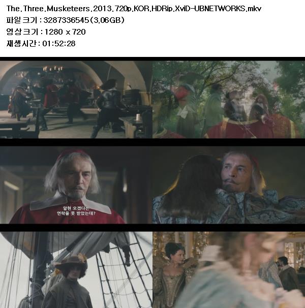 | The.Three.Musketeers.2013.720p.KOR.HDRip.XviD-UBNETWORKS.mkv | 3.1 G | 01:52:00 | 1280x720 |