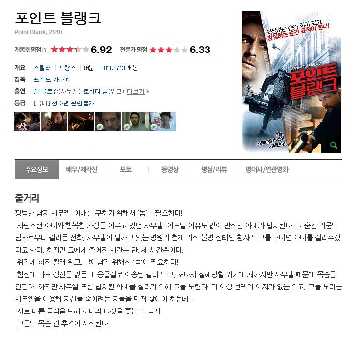 | [HD]포인트블랭크.Point Blank.2010-BDRip.mkv | 1.9 G | 01:24:00 | 1280X720 |
