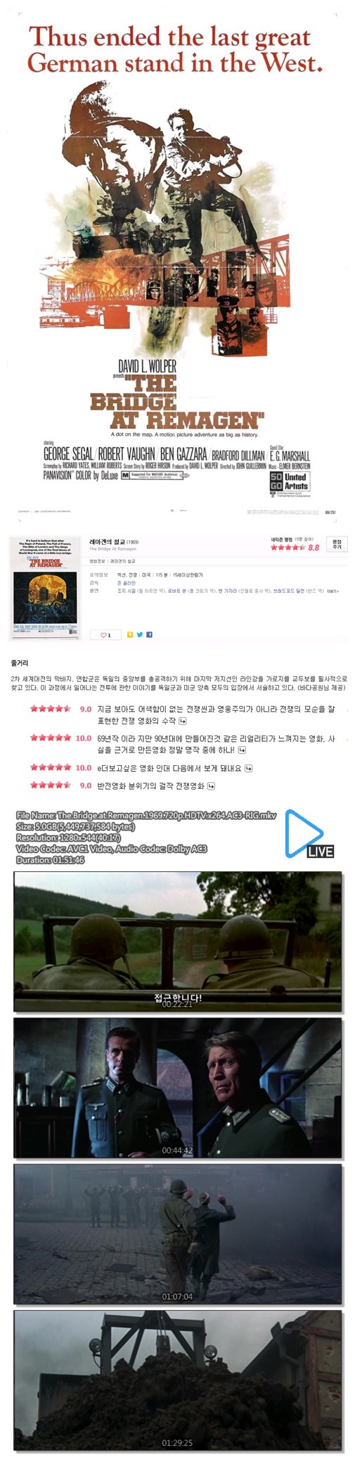 | The.Bridge.at.Remagen.1969.720p.HDTV.x264.AC3-RIG.mkv | 5.1 G | 01:51:00 | 1280x720 |