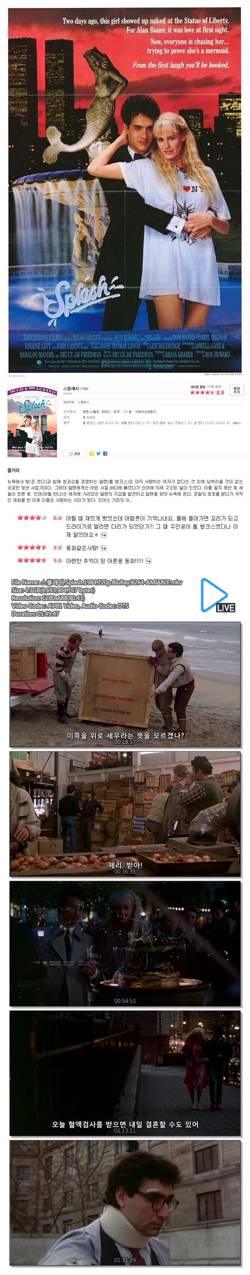 | 스플래쉬.Splash.1984.720p.BluRay.X264-AMIABLE.mkv | 4.4 G | 01:49:47 | 1280x720 |