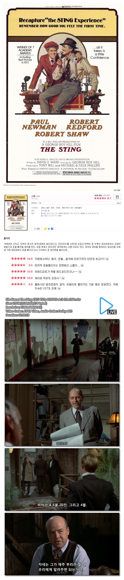 | The Sting 1973 720p HDDVD Ac3 5.1 x264.mkv | 6.6 G | 02:09:00 | 1280x720 |