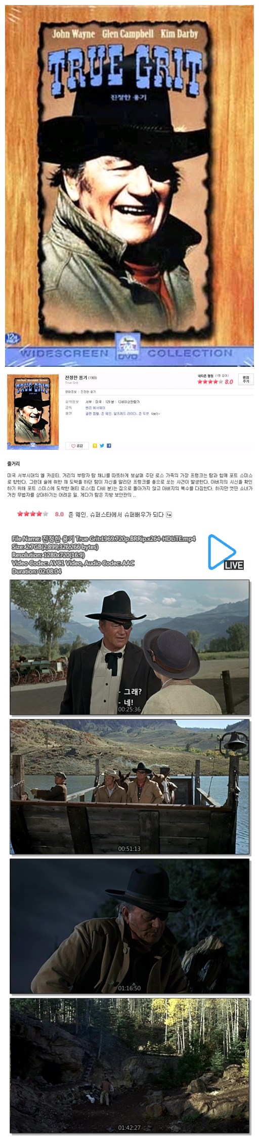 | 진정한 용기 True Grit.1969.720p.BRRip.x264-HDLiTE.mp4 | 2.7 G | 02:08:04 | 1280x720 |