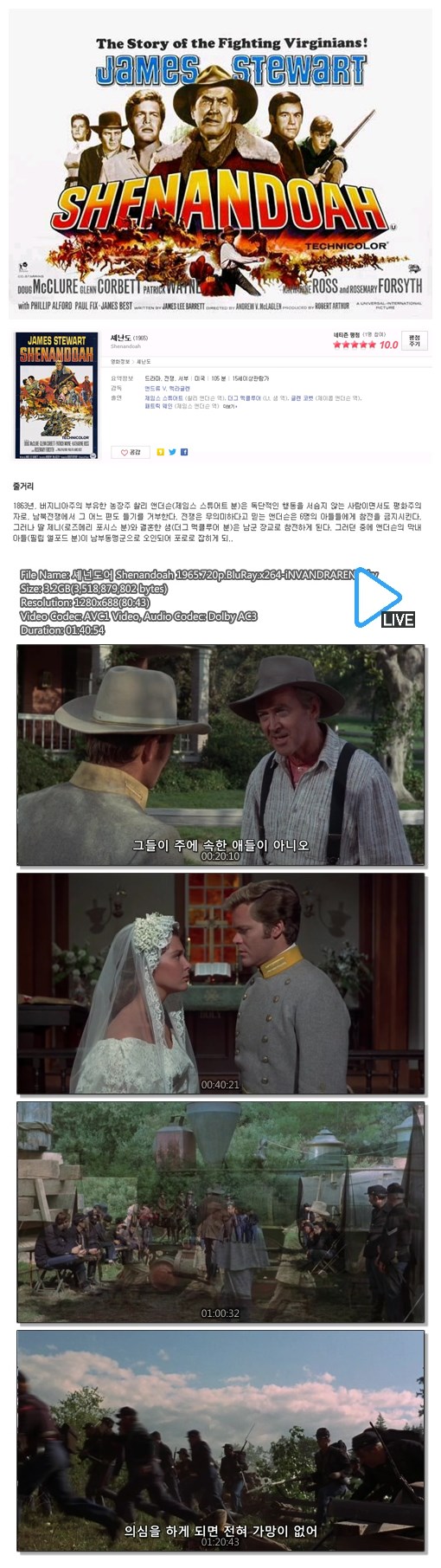 셰넌도어 Shenandoah 1965.720p.BluRay.x264-iNVANDRAREN.mkv 3.3 G 01:40:00 1280x720