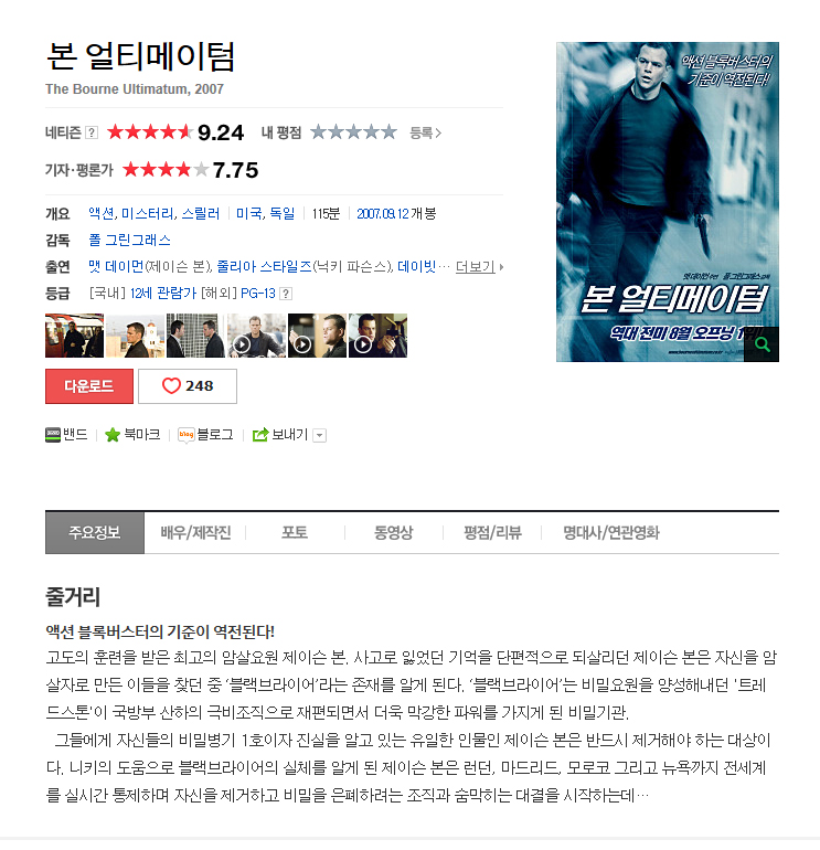 | The Bourne Ultimatum.2007.720P.BluRay.x264.AC3.mkv | 4.4 G | 01:55:00 | 800X330 |