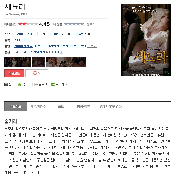 | 세뇨라.HD.720p.mp4 | 1.6 G | 01:43:05 | 1280x720 |