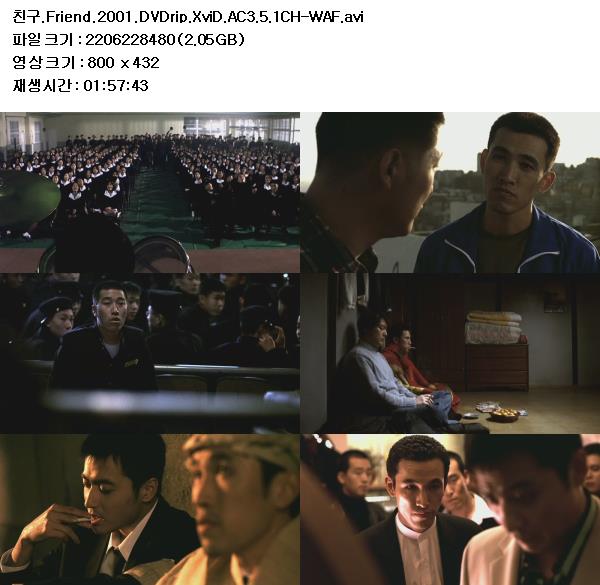 | 친구.Friend.2001.DVDrip.XviD.AC3.5.1CH-WAF.avi | 2.1 G | 01:57:00 | 800X431 |