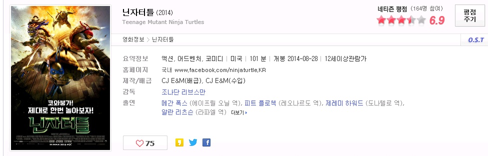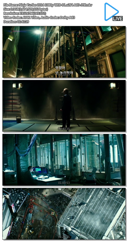 | Ninja Turtles 2014 1080p WEB-DL x264 AC3-JYK.mkv | 3.4 G | 01:41:00 | 1920x1080 |