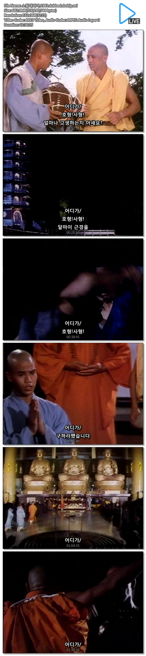 | 소림대라마.1983.dubbed.dvdrip.avi | 683 M | 01:30:00 | 800X574 |