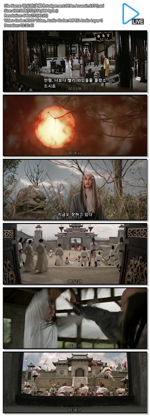 | 결살령(決殺令.Judgement.Of.An.Assassin.1977).avi | 699.6 M | 01:31:00 | 800X339 |