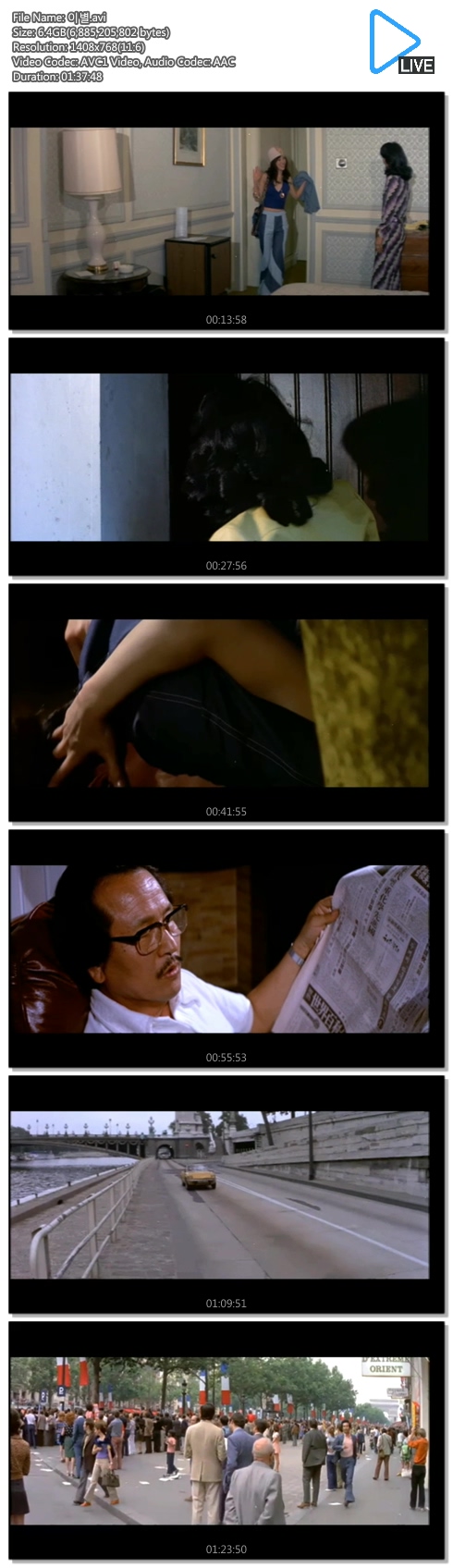 | 이별.avi | 6.4 G | 01:37:00 | 1320X720 |
