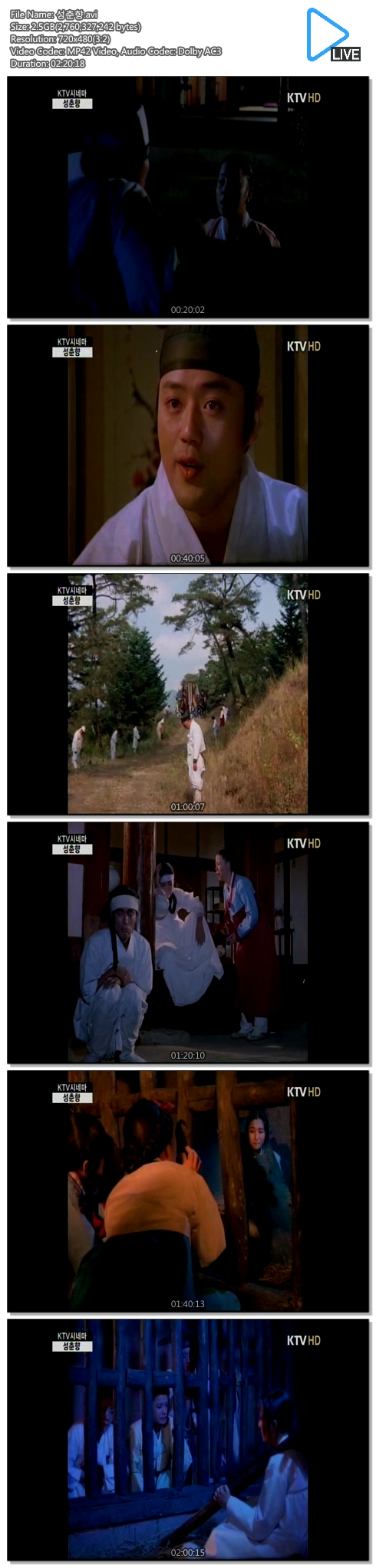 | 성춘향.avi | 2.6 G | 02:20:00 | 800X533 |
