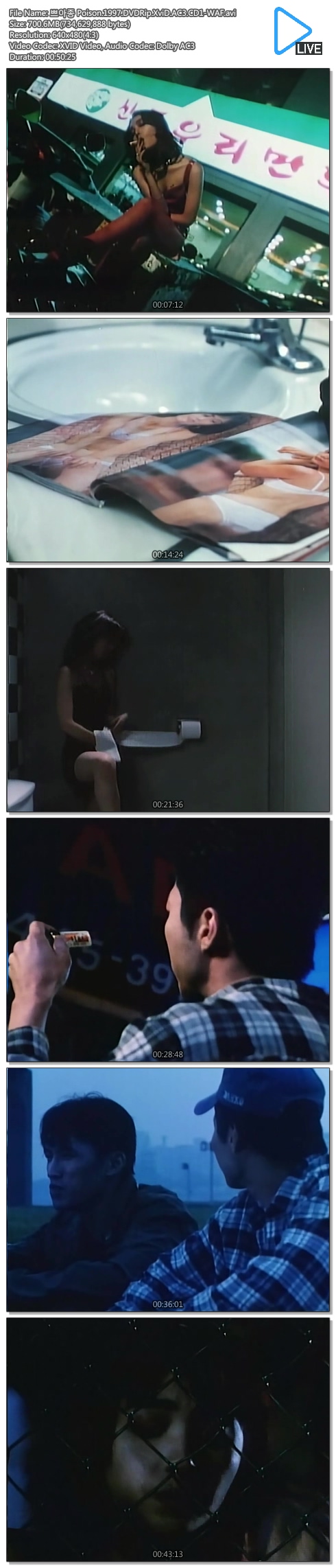 | 쁘아종 Poison.1997.DVDRip.XviD.AC3.CD2-WAF.avi | 700.3 M | 00:50:35 | 800X600 |