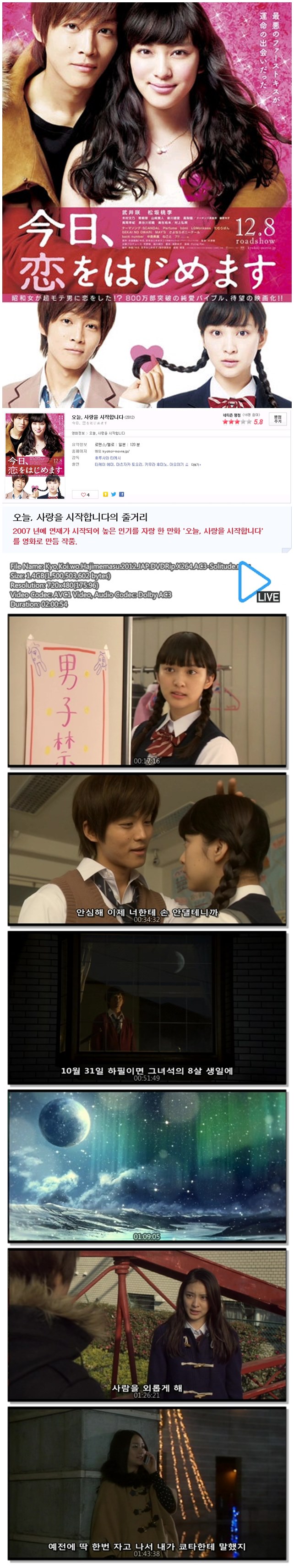 | Kyo,Koi.wo.Hajimemasu.2012.JAP.DVDRip.X264.AC3-Solitude.mkv | 1.4 G | 02:00:00 | 800X533 |