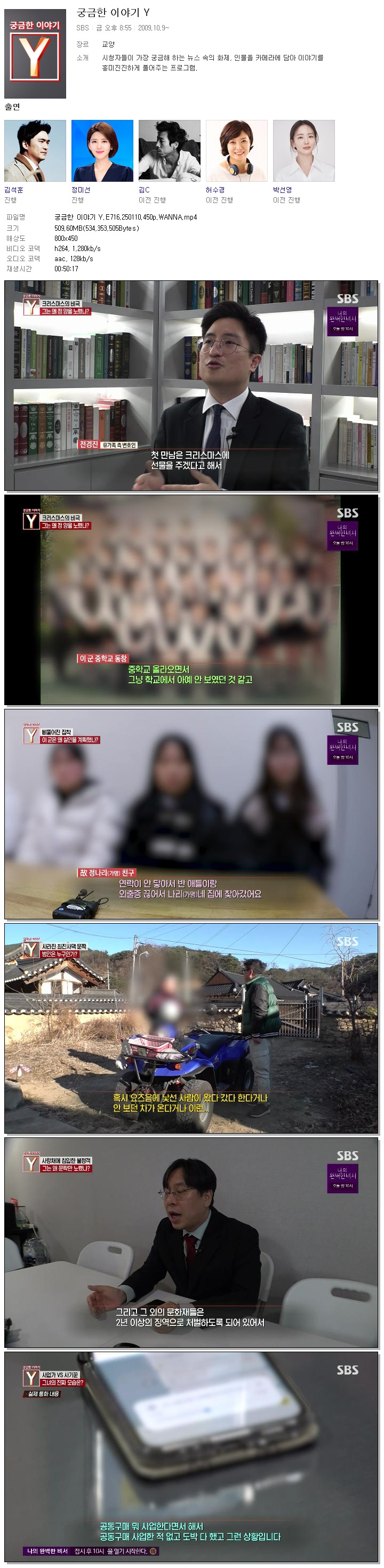 | [SBS] 궁금한 이야기 Y.E716.250110.450p.WANNA[김석훈, 정미선].mp4 | 509.6 M | 00:50:17 | 800x450 |