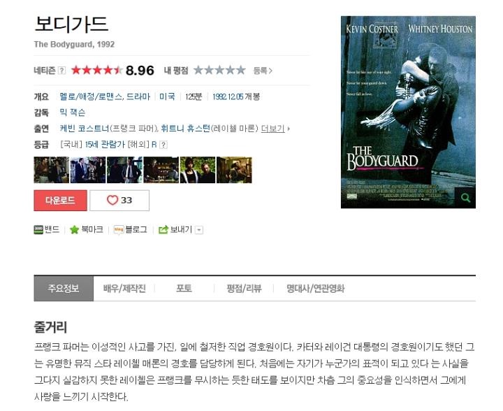 | The.Bodyguard.1992.1080p.BluRay.X264-7SinS.mkv | 8.7 G | 02:09:00 | 1920x1080 |