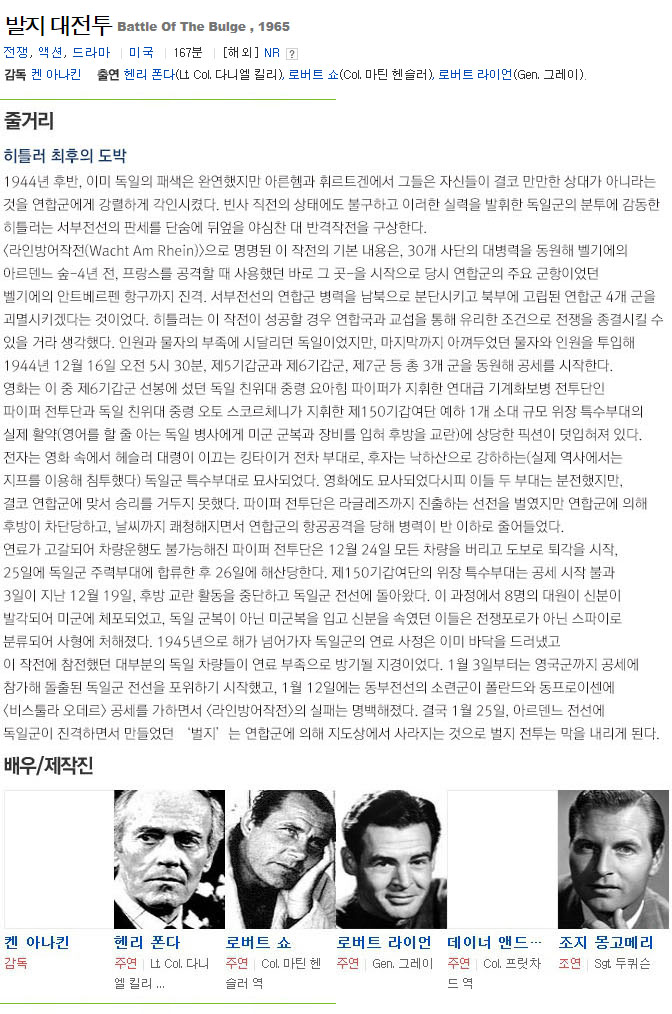 | 발지 대전투. Battle.Of.The.Bulge.1965.mkv | 4.4 G | 02:49:00 | 800X290 |